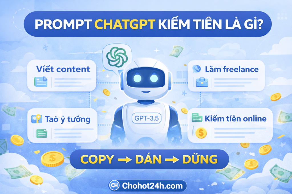 Prompt ChatGPT kiếm tiền cho người mới là công cụ giúp bạn tận dụng AI để tạo nội dung, làm việc online và tạo thu nhập mà không cần nhiều kỹ năng.