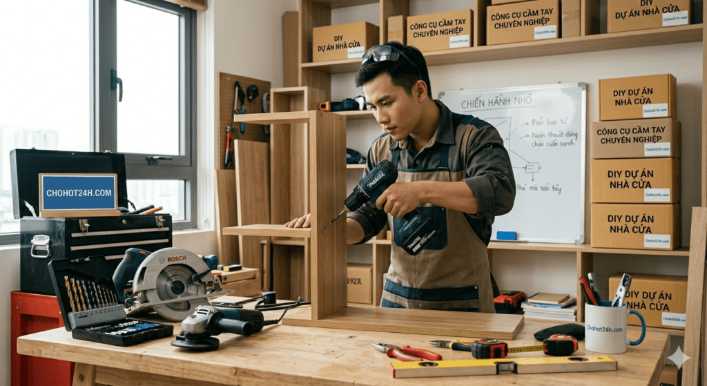 • Prompt 20 (Dự án DIY): “Lập kế hoạch và hướng dẫn đóng một kệ sách đơn giản tại nhà bằng máy cưa và máy khoan cầm tay.”