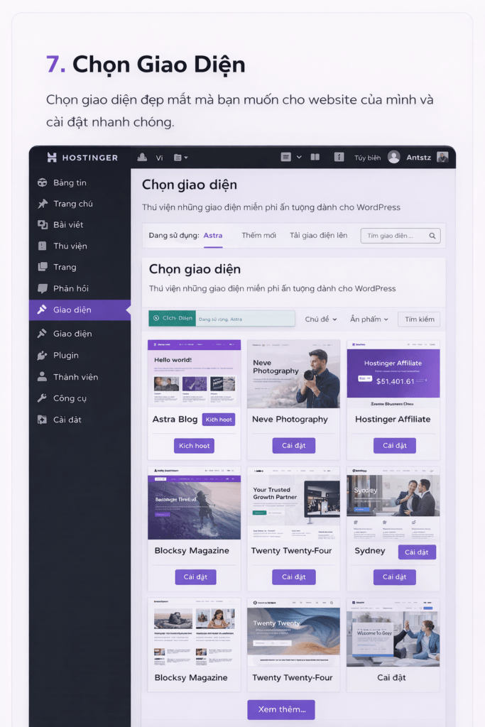 Bước 5 – Chọn giao diện (theme)