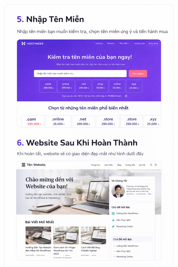 Cách tạo website bằng Hostinger cho người mới chi tiết từng bước, không cần biết code, làm được ngay trong 15 phút.