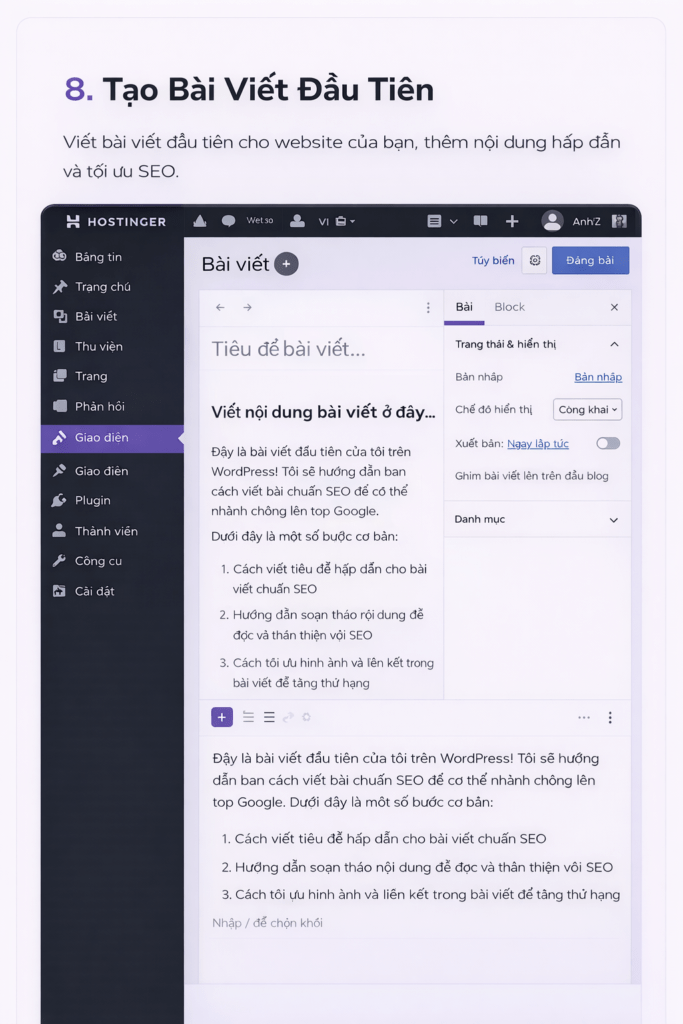 Bước 8 – Tạo bài viết đầu tiên